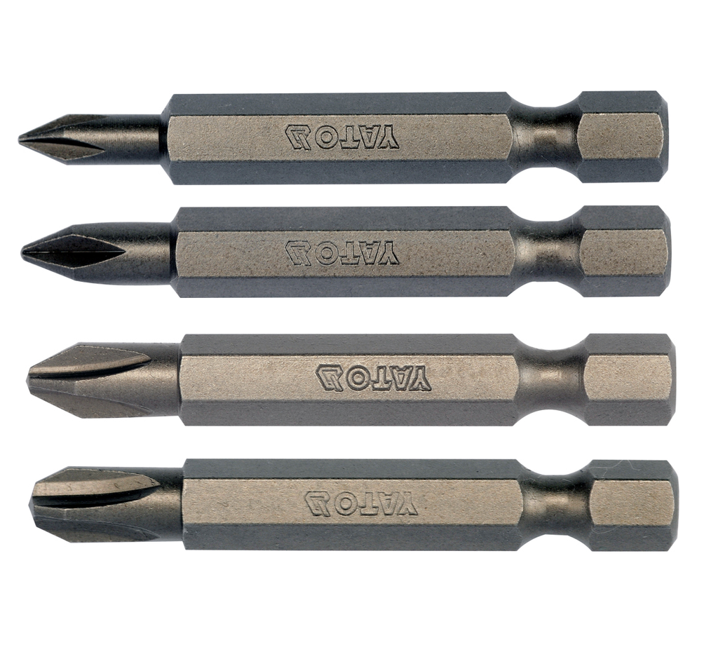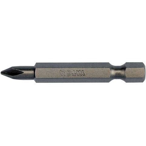 10 Pzas - Puntas Phillips Ph De Destornillador 1/4” x 50 Mm, Dureza Rockwell: HRC 58-61, Pulidas, Material: Acero S2, Granalladas, protección antióxido, Logotipo De Yato Y Tamaño Impreso.