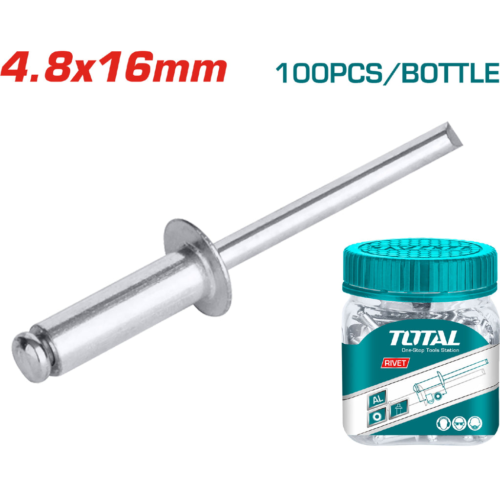 100/pza Remache 4.8x16mm. De extremo abierto . Aluminio.