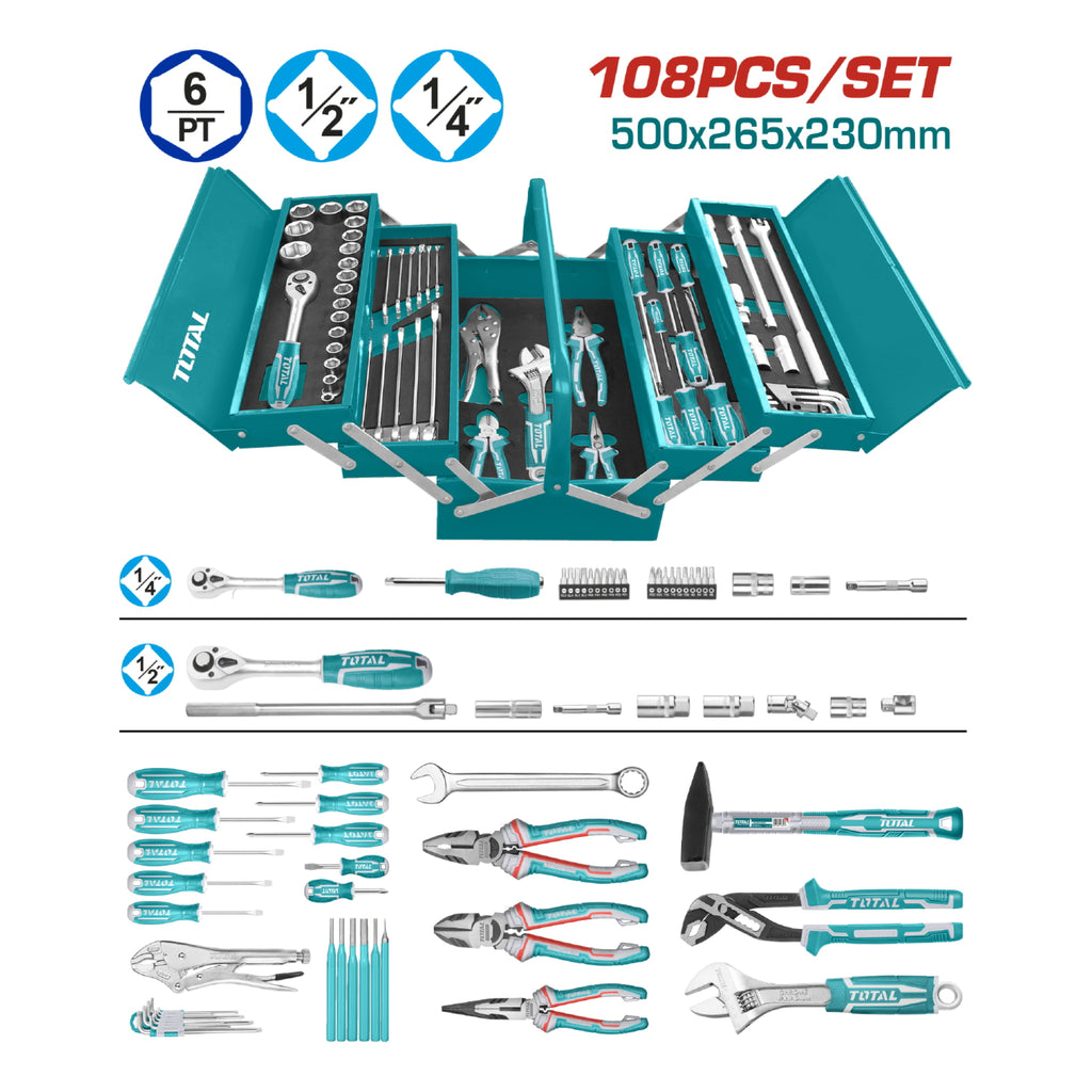 108 Piezas de Herramientas en Caja Se vende en juego.