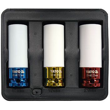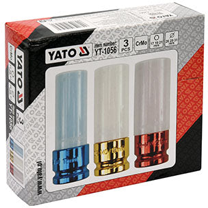 Yato Dado De Impacto Largo Para Pared Delgada. Tres Piezas: 17, 19, 21 Mm, Material: Crmo Scm-440 Con Acabado Negro Fosfatado, Cubierta De Pp Dado De Impacto Largo Para Pared Delgada, Socket De Impacto Largo Para Pared Delgada, Dado De Impacto Largo