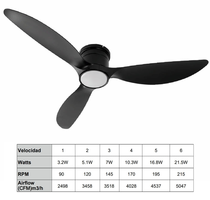 Un ventilador de techo LED en color negro con CCT (temperatura de color cálida, neutra y fría) 22 watts y 1980 lumens es una excelente opción para proporcionar iluminación y circulación de aire en tu hogar.Estos ventiladores no solo son funcionales, sino que también pueden agregar un toque de estilo y elegancia. Material de hierro, ABS y acrílico de alta calidad con una dimension de 1320.8mm, voltaje de 90-300v 50-60Hz, incluye control. Dimiable el cual te permite ajustar la intensidad de la luz a tu gusto