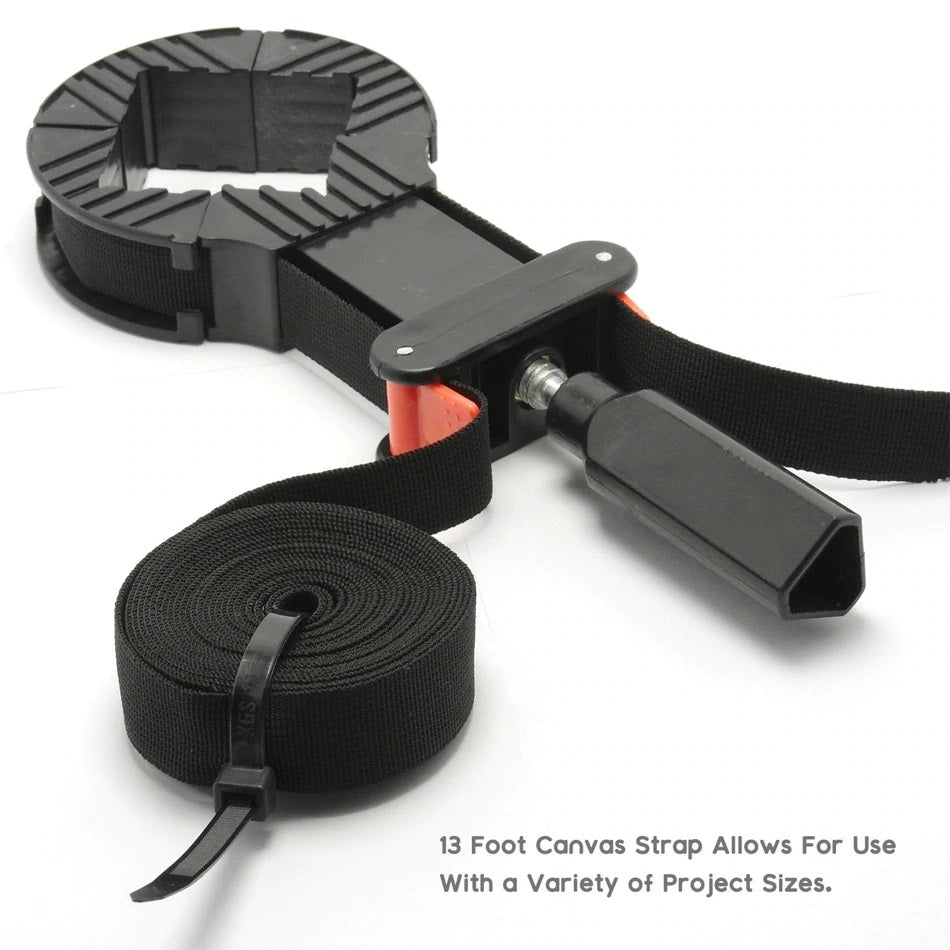 Abrazadera de esquina multifuncional con banda ajustable con clic para carpintería.