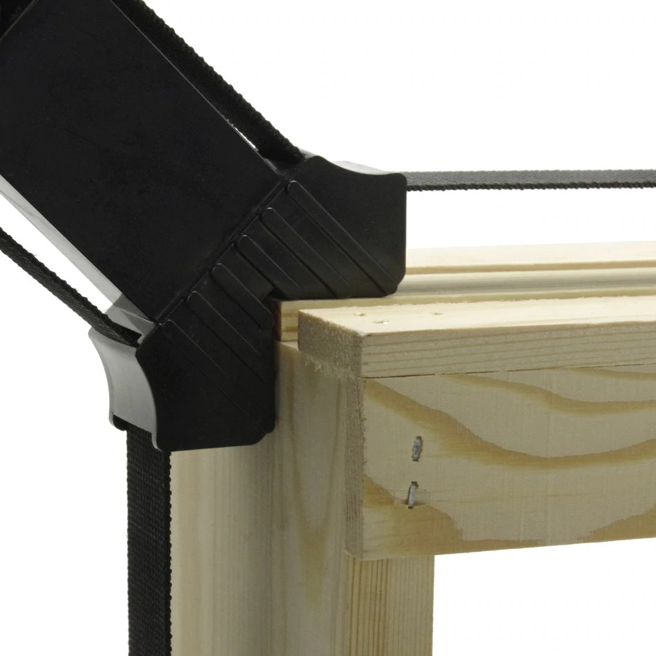 Abrazadera de esquina con banda ajustable con 4 garras para un mejor ajuste.