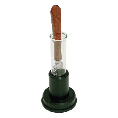 Dispensador de aceite para lubricar las ruedas de corte. Se adhiere al vidrio con la ventosa que tiene incorporada en la base.