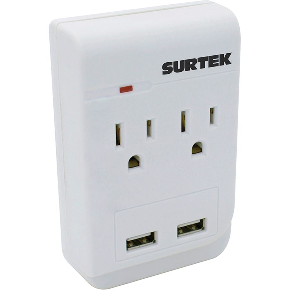 Adaptador Tomacorriente Tee 2 Entradas 2 Puertos USB Surtek
