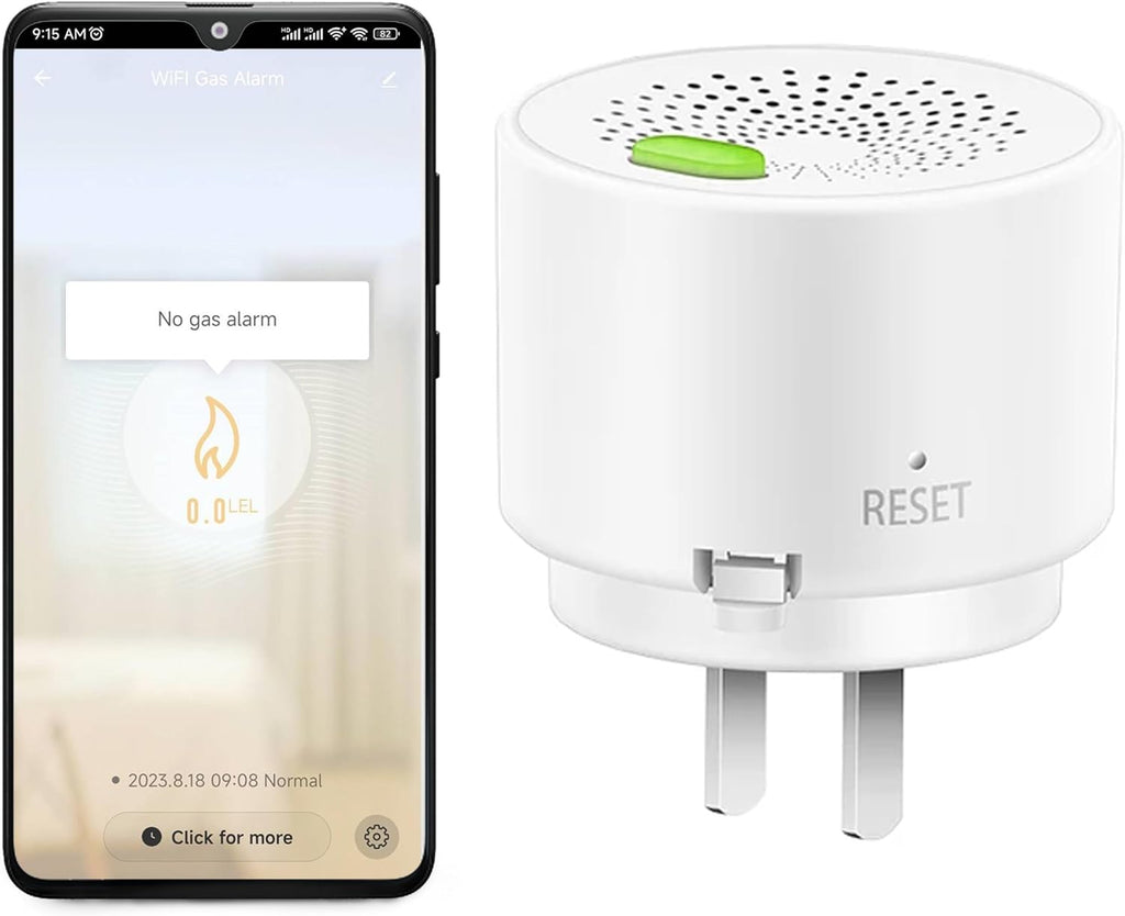 Alarma detector de gas y monoxido de carbono de enchufe, uso por WiFi.