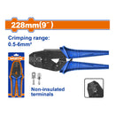 | Características | Rango de engaste: 0.5-6mm². Para terminales y receptáculos sin aislamiento. AWG: 20-10. Longitud: 9 pies. Mango de diseño único de ABS. |