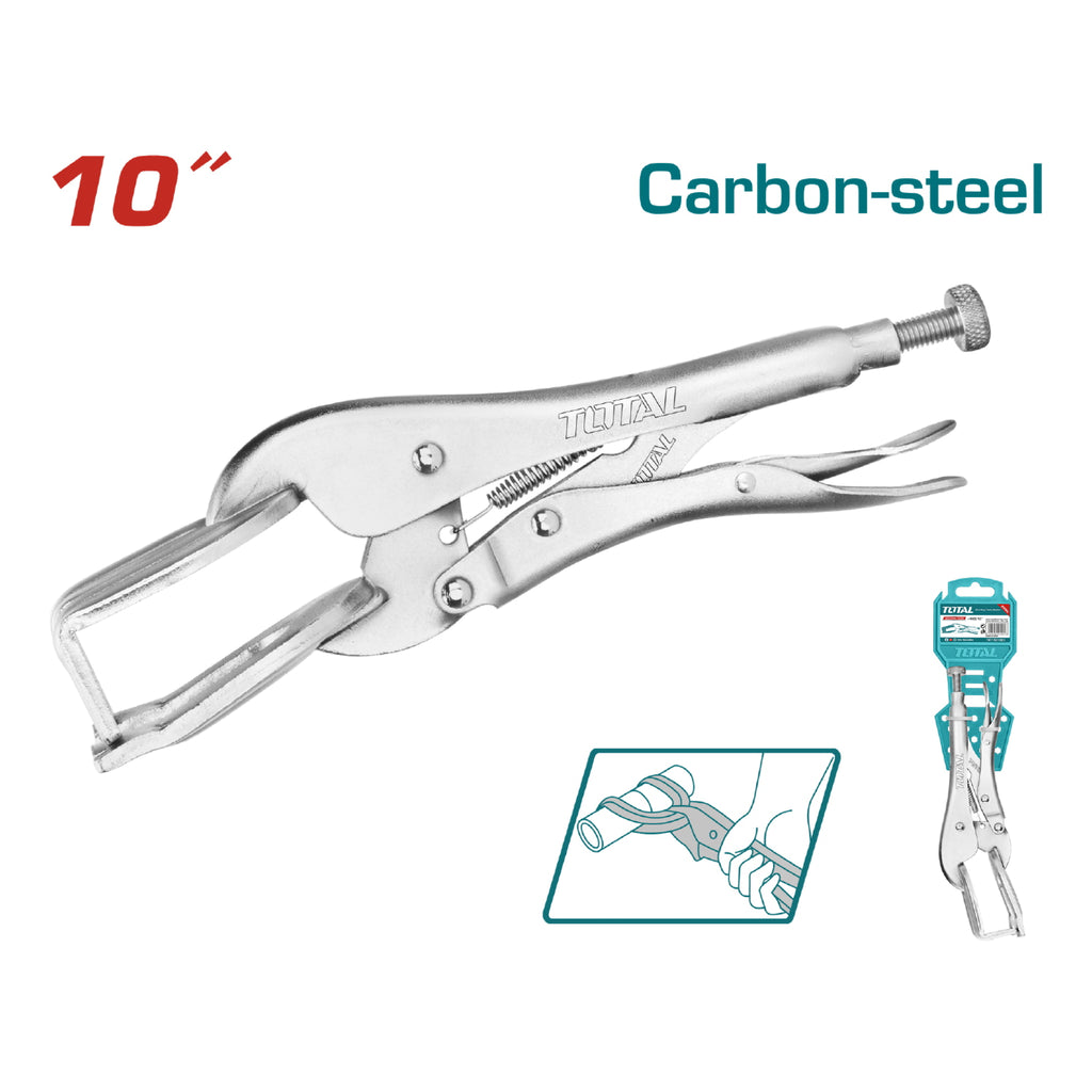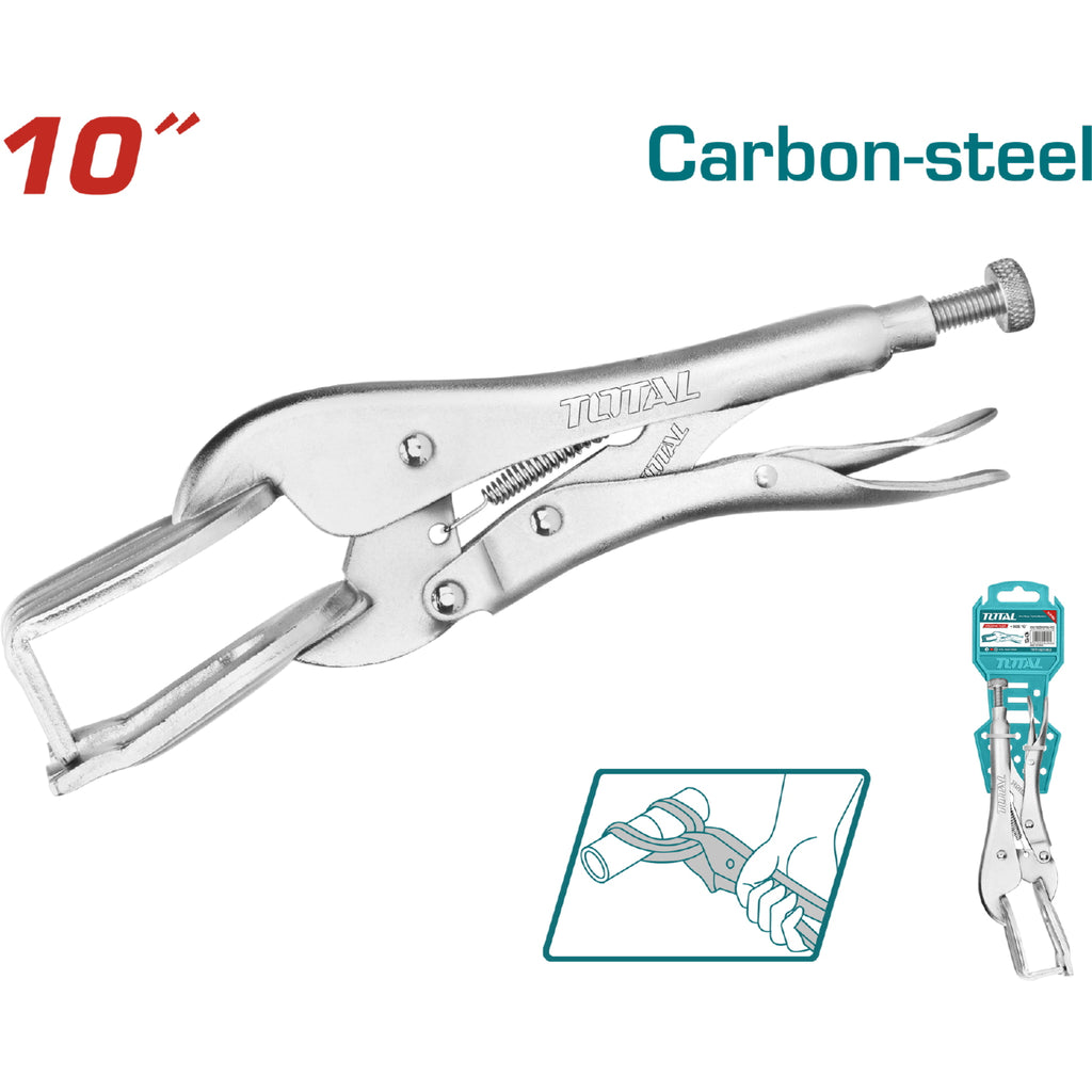 Alicate de presión para soldador, Longitud: 254 mm (10''''), Peso 592g. Mandíbulas de sujeción en forma de “U”, niquelado, material de la cabeza: acero al carbono, cierre tipo europeo, cuerpo de acero al carbono.