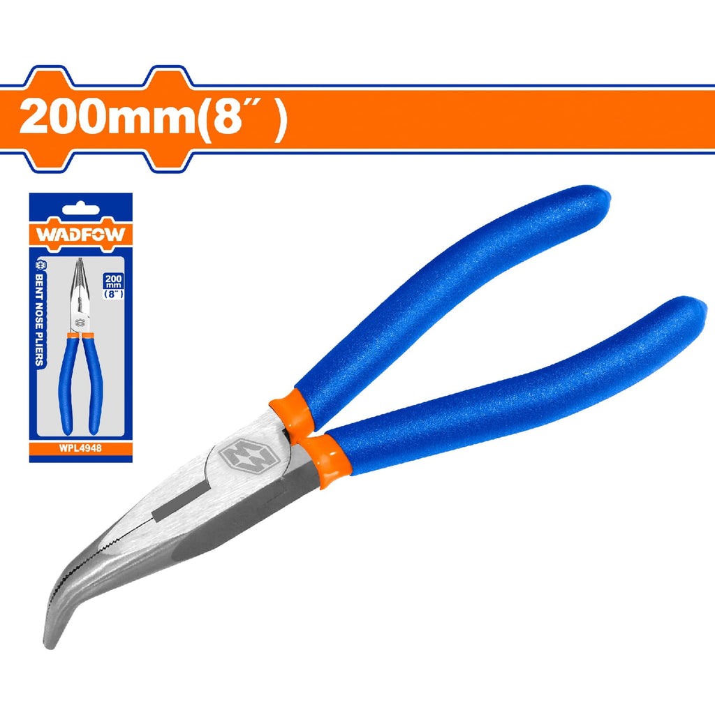 Alicate De Punta Doblada 8"/200Mm. Pulido Y Antióxido. Con Mango De Plástico.