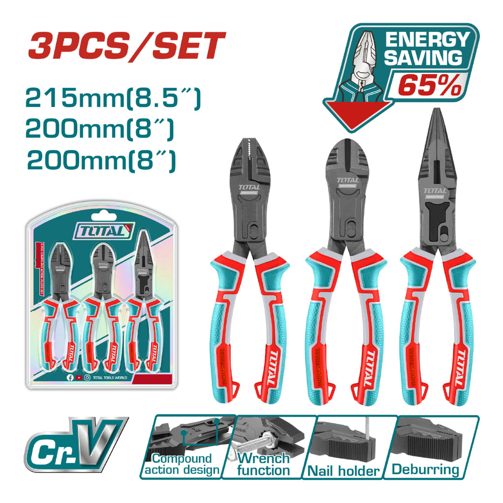 Alicates Variados 3 piezas. Salva 65% de fuerza
