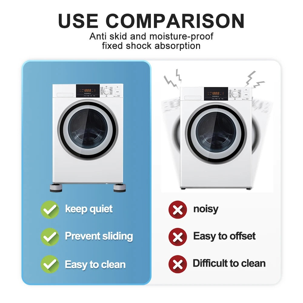 Soporte para lavadora o muebles con cancelación de ruido y choque. La fuerza del patrón de tracción de micro agarre de la almohadilla de absorción de impactos elimina completamente el movimiento del suelo de la lavadora o secadora y reduce en gran medida la transferencia de vibraciones de tu lavadora/secadora al suelo para ayudar a protegerlo de arañazos y rozaduras.