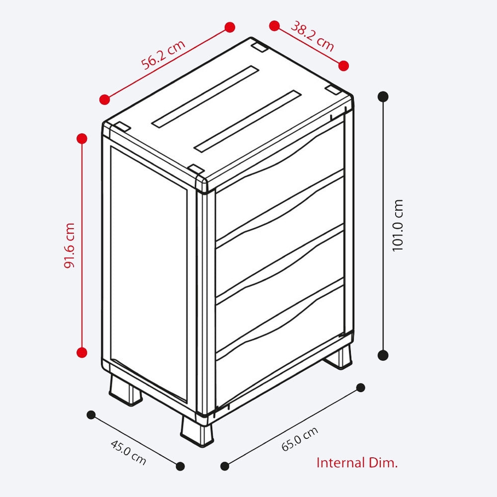 -Tiene 4 cajones grandes con sistema de fácil apertura gracias al diseño del sistema de rodamiento integrado sin piezas metálicas.