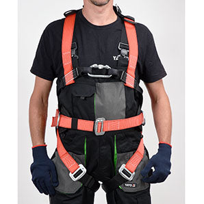 Yato arnés De Seguridad anticaídas. Material: 100% poliéster, Tamaño: General, Bolsillos Ajustables Con Hebilla De plástico rígido, cinturón Delantero Y De Cintura Ajustables Con Hebillas metálicas De liberación rápida; 2 Hebillas De plástico Duro Cone