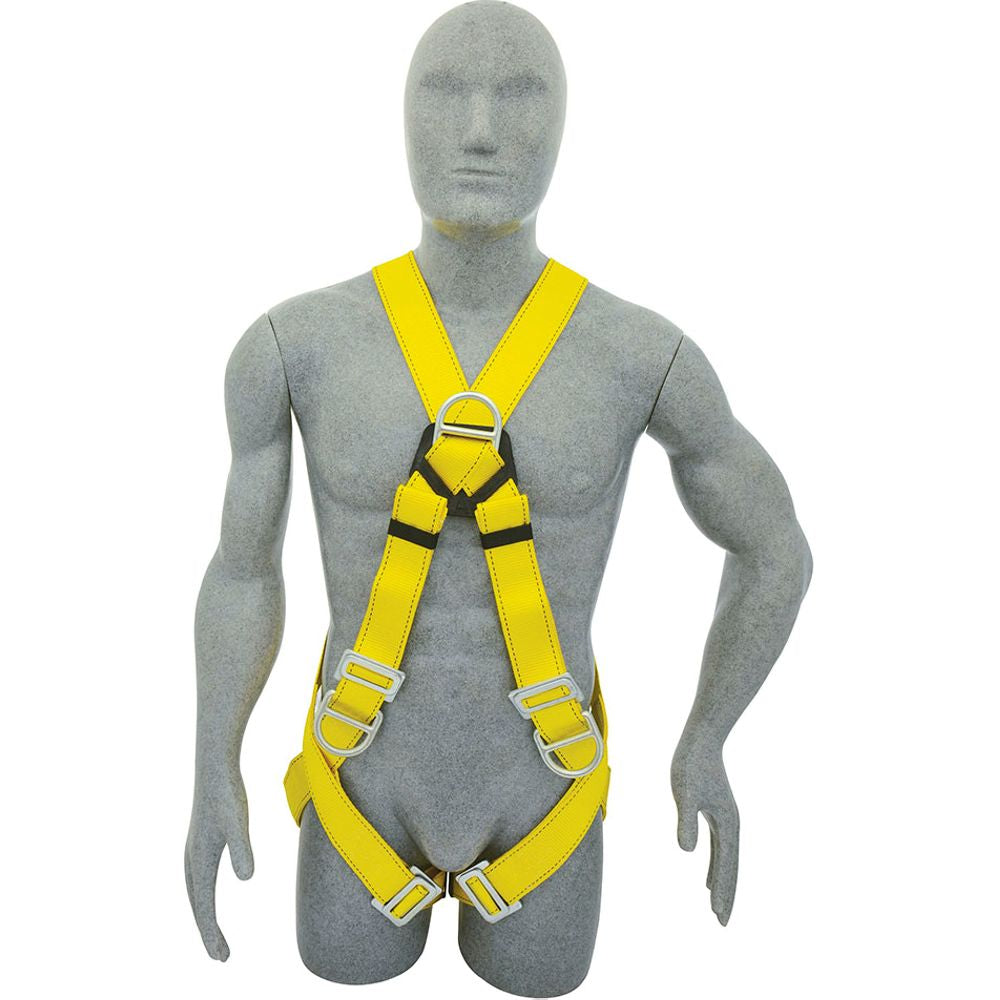 -Anillos tipo D fabricados en acero forjado a nivel de la cintura, 1 en el pecho y 1 en la espalda tipo hebilla de conexión rápida