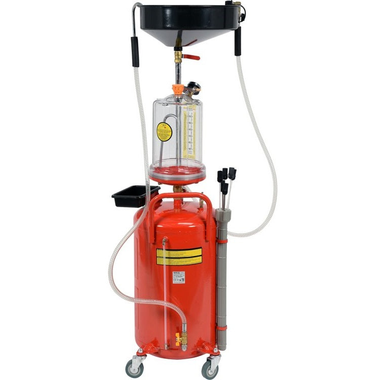Bandeja Recolectora de Aceite con Expulsor Neumatico. Tanque de 70 litros. 6 Sondas de Succion. Embase recolector de 10 L. Embudo con capacidad de 10 L. Con Manometro y Valvula de Seguridad. Para extraer aceite de desecho de motores, cajas de engranajes