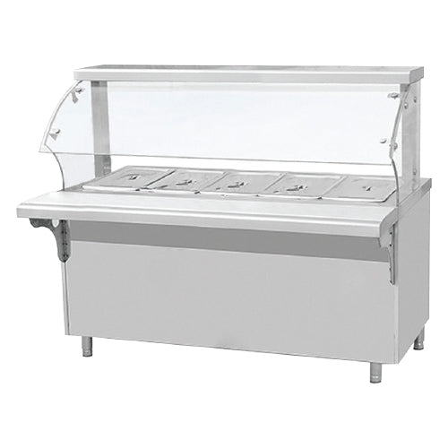 Baño maria electrico con vidrio curvo 5 bandejas 1800*700(300)*800(500)mm.1.2mm inoxidable 220V/50/60Hz. Temperatura:30~80°C(1 año)