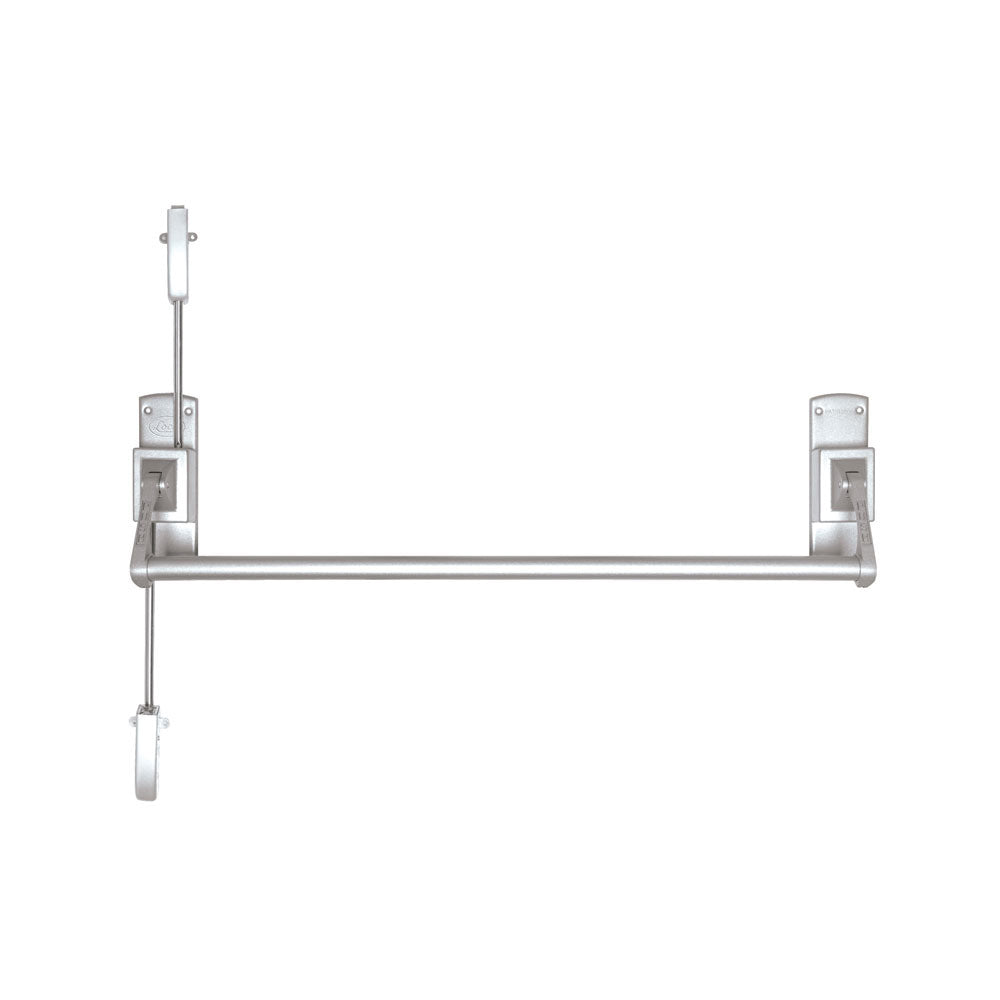 -Barra antipánico universal 2 puntos Lock.. -Para puertas abatibles con espesores de1'''' a 2'''' (25mm a 51mm).. -Operación silenciosa.. -Acción vertical de toque en dos puntos.. -Ajustable para diferentes anchos y altos de puertas.. -Picaporte y barra de acción precisa en caso de emergencias.. -Acabado aluminio. -Acabado: Aluminio