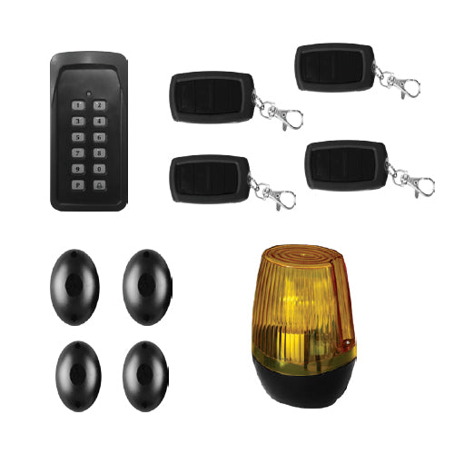 | Incluye | (2) pares fotoceldas, (4) controles, (1) panel de codigo y una lampara |