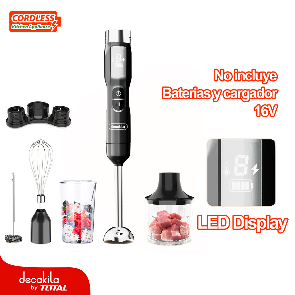 | Características | Inalámbrica 5 en 1. 5 Velocidades. Puede mezclar zumo o salsa. Con pantalla LED. 2 cuchillas de acero inoxidable. |