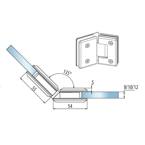 Bisagra de ducha 135 grados Aleacion ZAMAC. Economica Acabado Brillante. Vida util 2-3 años