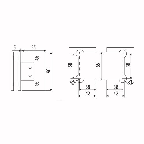 Bisagra de ducha vidrio-vidrio 90 grados. Ajustable para instalacion mas facil. Bronce niquelado alta calidad. 10 años de garantia.