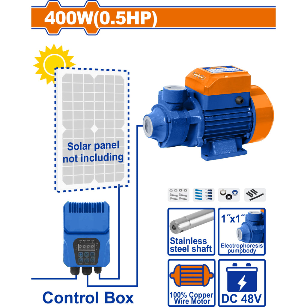 | Características | Potencia nominal: 400W (0.5HP) Altura máxima: 45m Flujo máximo: 41L/min Succión máxima: 8m Diámetro del tubo: 1"x1" Motor de alambre de cobre. Eje de acero inoxidable. |