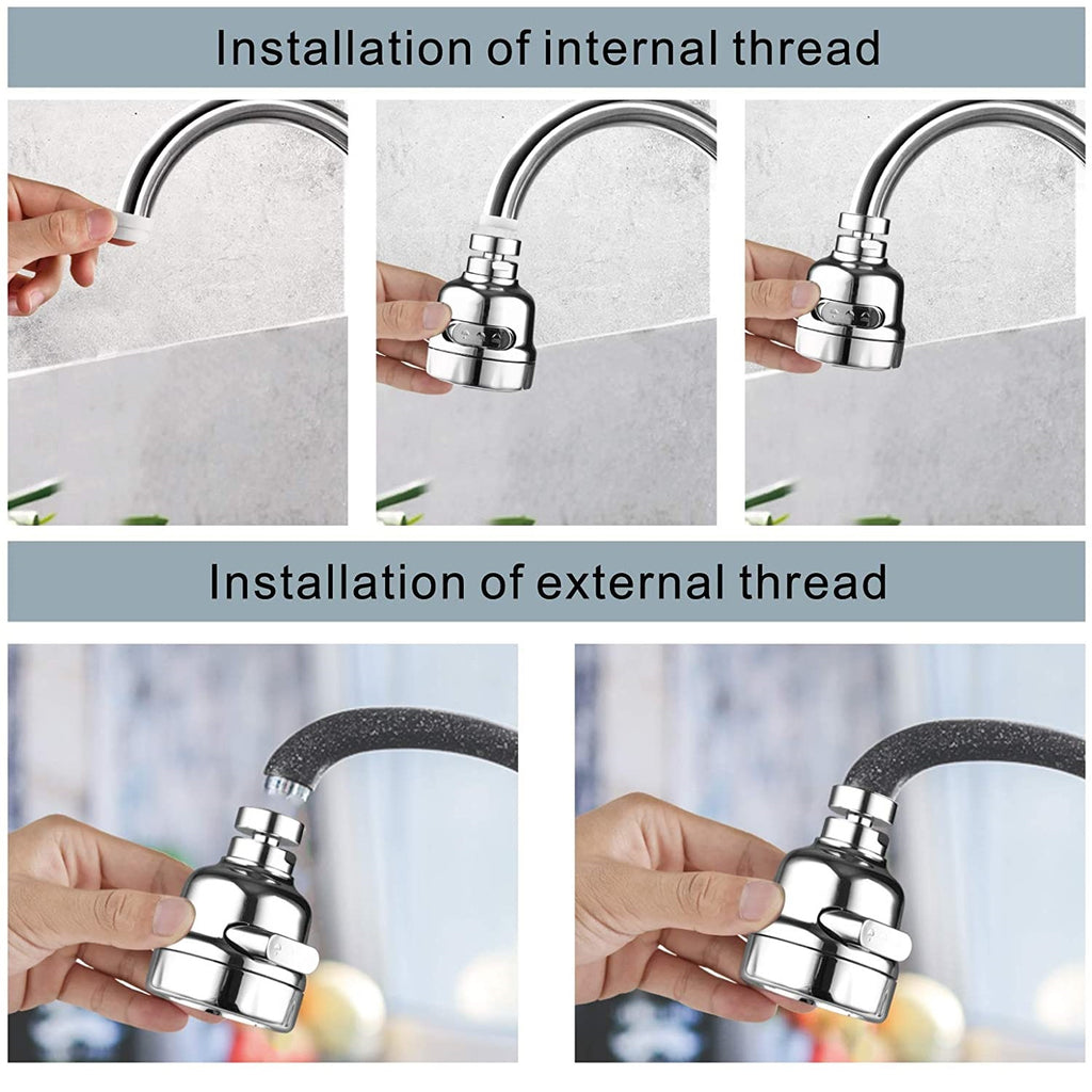 Se adapta a grifos redondos de 15-22mm de un diámetro estándar con rosca externa de 22mm e rosca interna de 24mm. Fácil instalación sin herramientas, hecho en segundos.