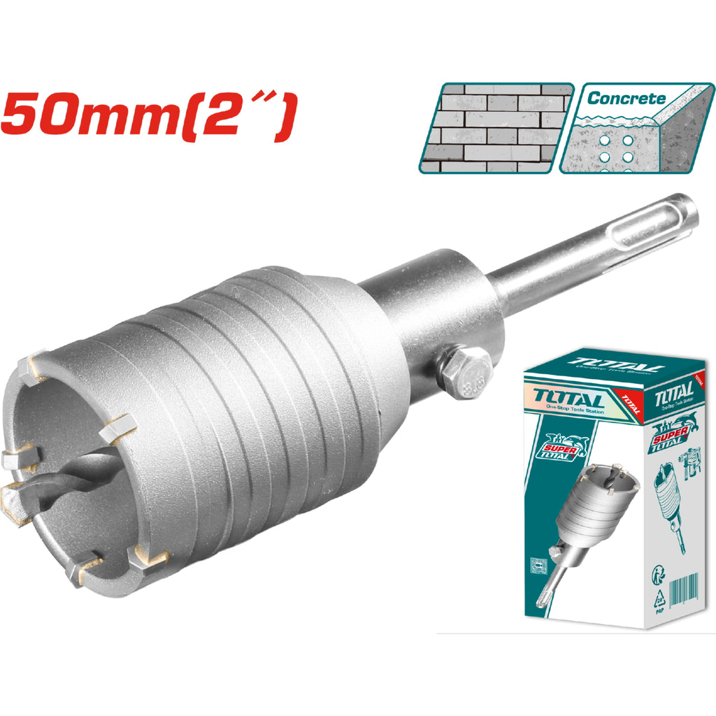 Broca Circular para Concreto. Diámetro: 50mm. cuchillas TCT. Con Adaptador de 110mm. Con 1 Broca para Mamposteria de 8X110mm.
