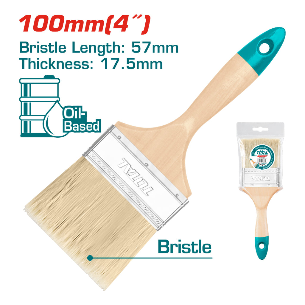 Brocha de 4'' (100mm). Largo 57mm grueso del pelo 18.5mm. Mango de madera.