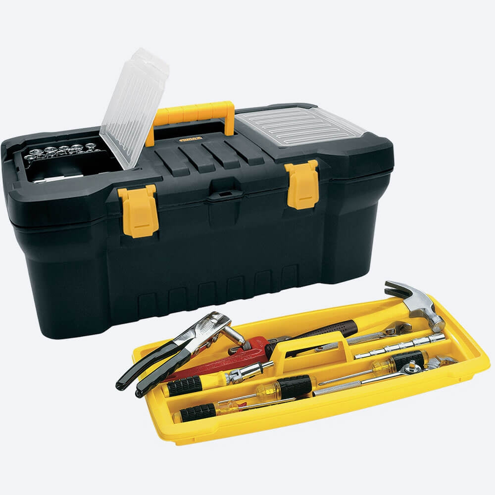 Caja de herramientas de 24'', color negro con amarillo