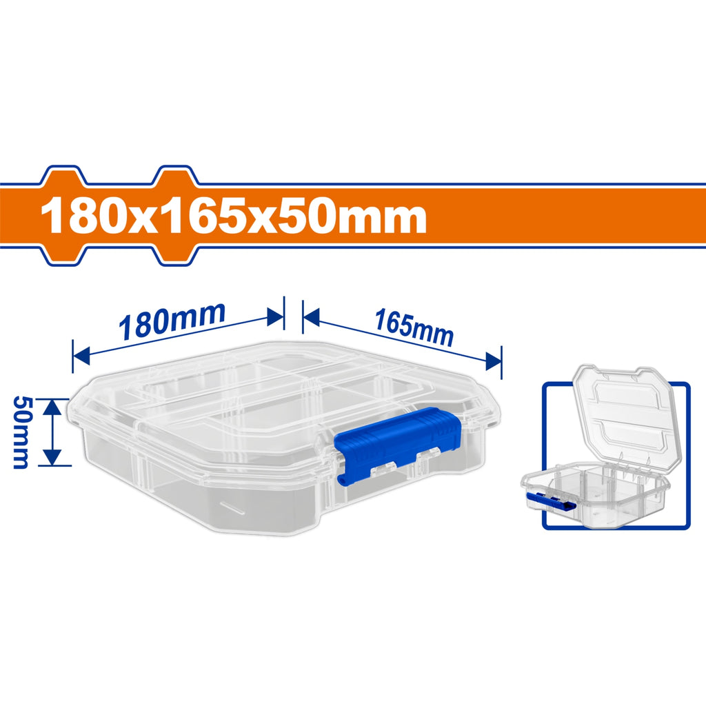 | Características | 180x165x50mm. 6 compartimientos. Separador removible. Ideal para accesorios pequeños. |