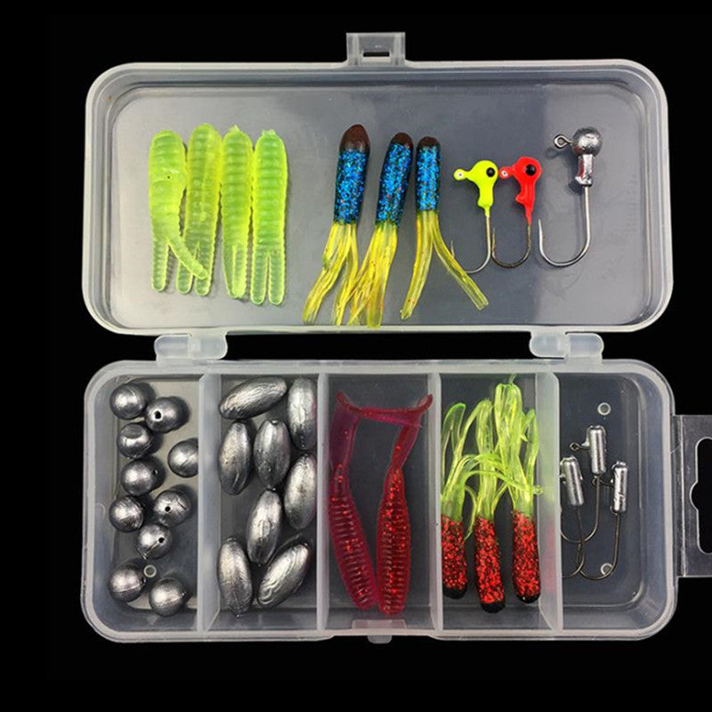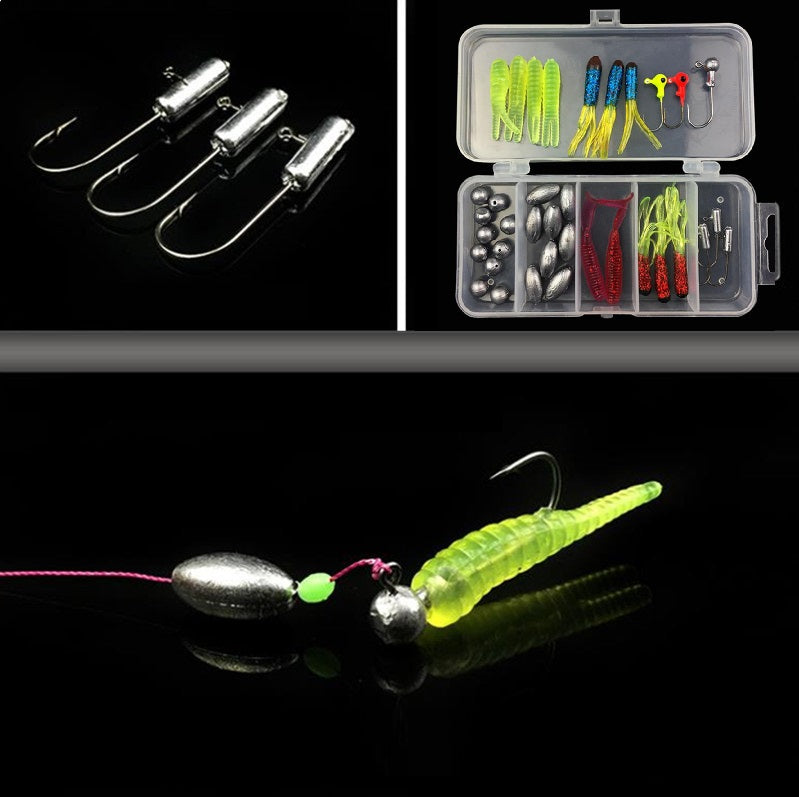 Caja señuelos suaves plomos y anzuelos 36 Pzas