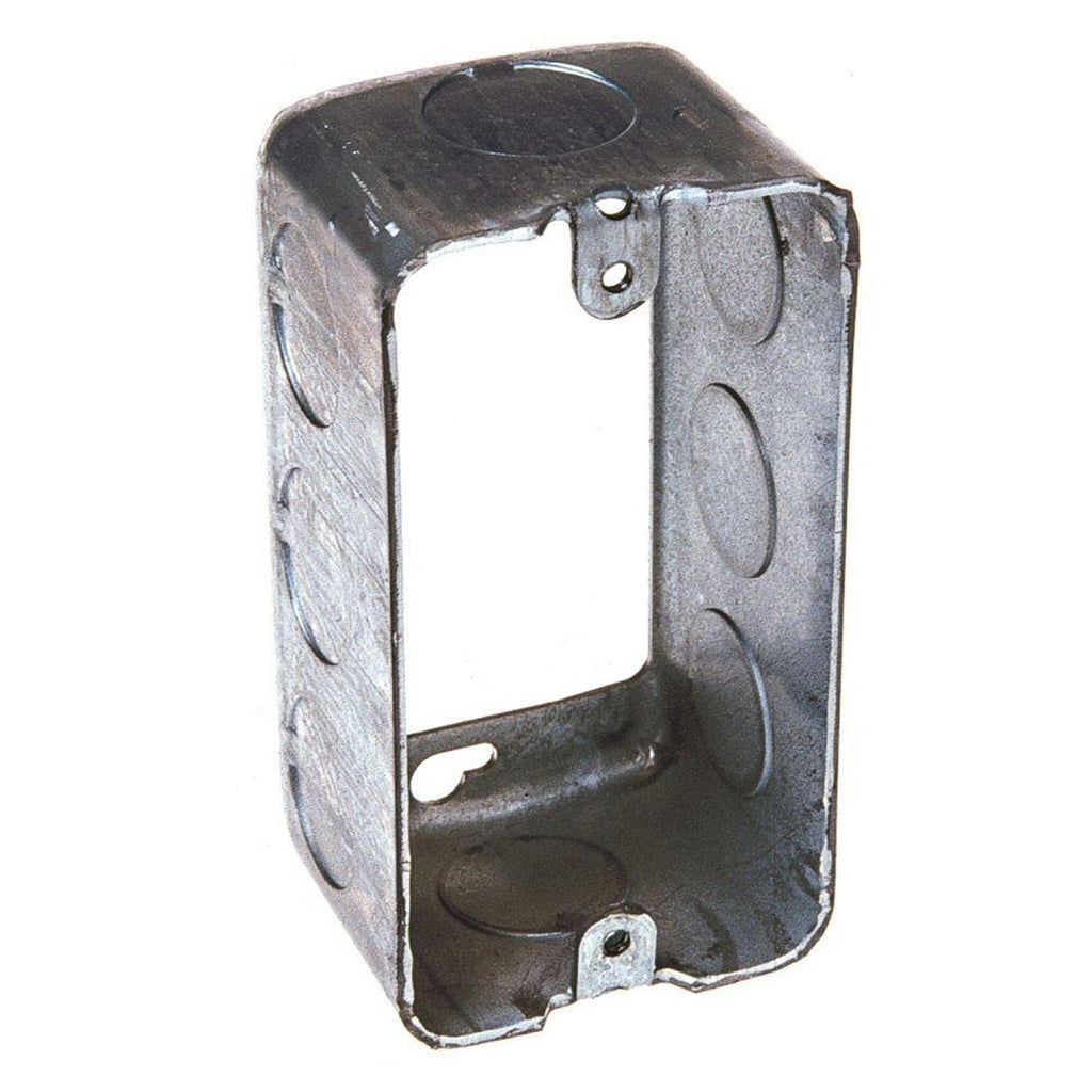 Cajilla Electrica Rectangular de 4x2 sin fondo. Con Huecos de 8X1/2''. Profundidad de 1-7/8. Espesor de 1.2 mm. Acero Galvanizado. Incluye Tornillos. Codigo de Barra con Sticker
