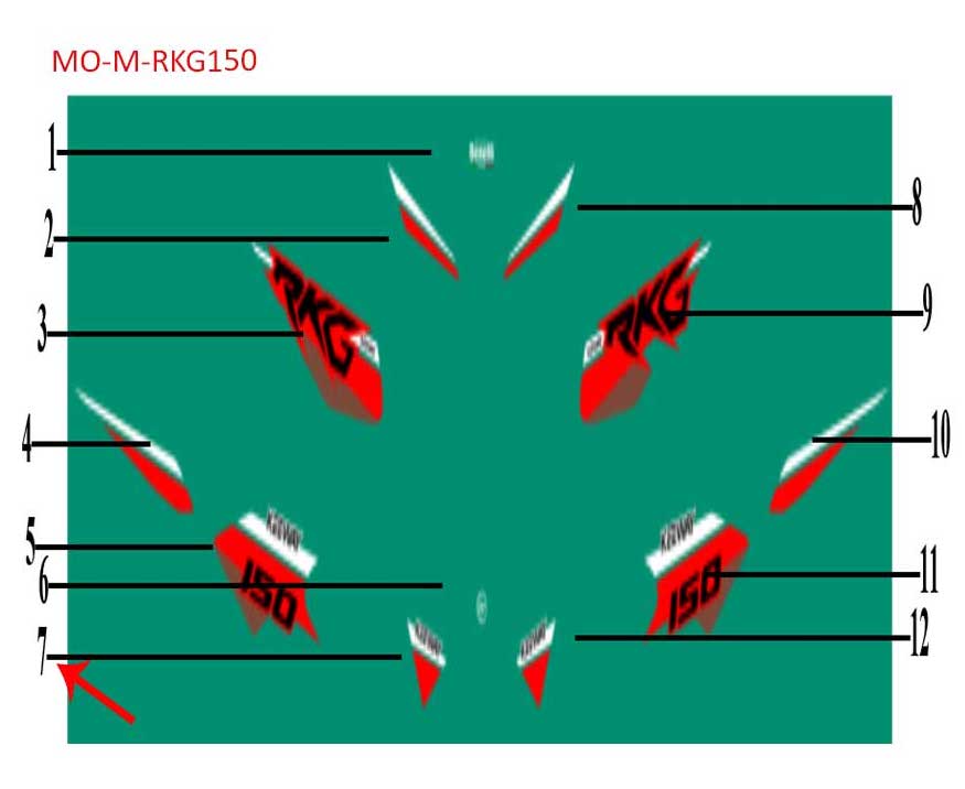 | *Nombre | Calcomania derecha del guardabarros delantero negra (RKG150) |