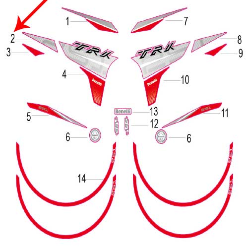 | *Nombre | Calcomania I del covertor derecho del tanque de combustible (TRK251) |