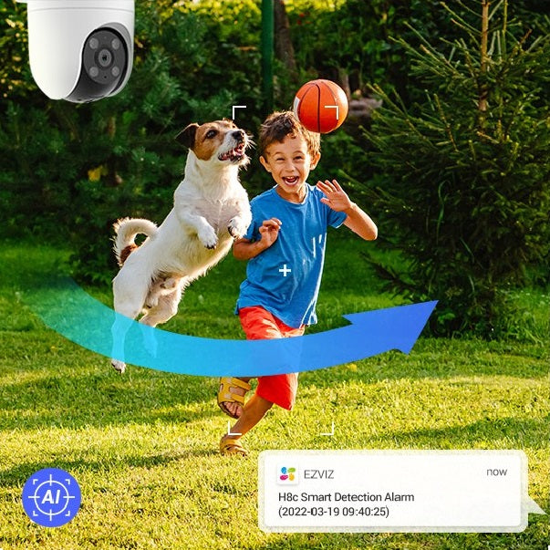 - EZVIZ con giro e inclinación, cámara H8c es compacta y cuenta con innumerables funciones inteligentes para la protección del hogar.