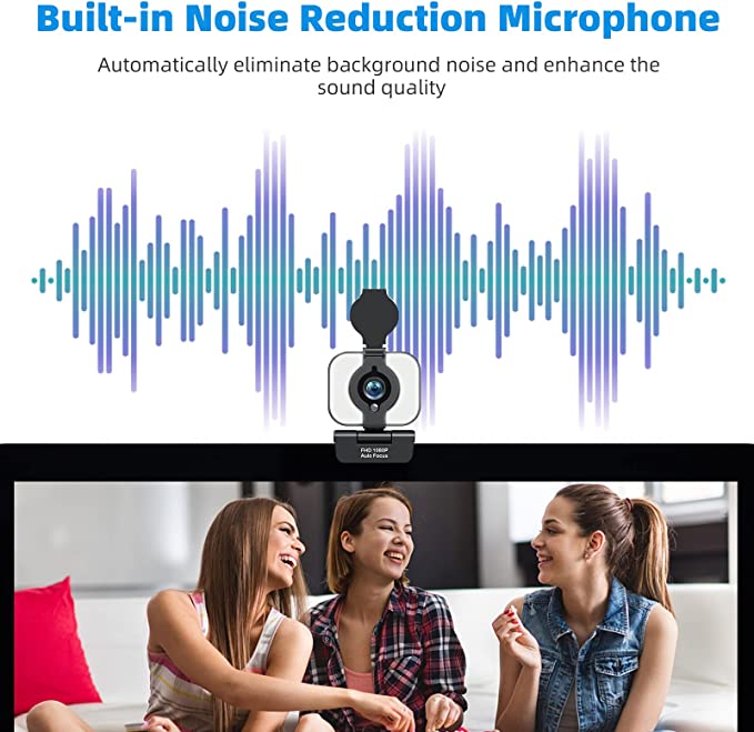 Cámara web HD 1080P con enfoque automático, anillo de luz, protector de privacidad y trípode, color negro