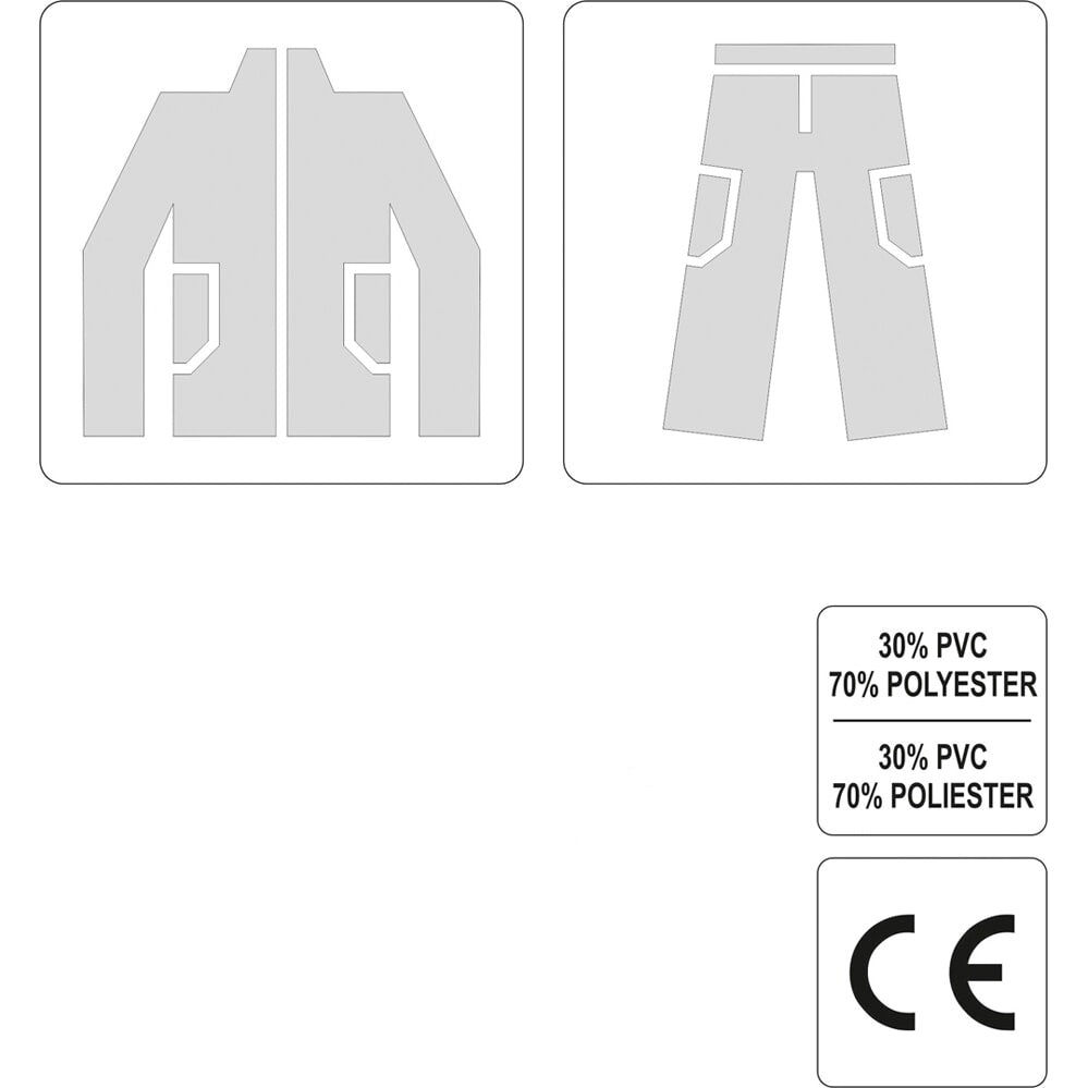 •Chaqueta: 2 bolsillos delanteros grandes (33x18cm) cada uno con solapa 2 orificios de ventilación debajo de los brazos.