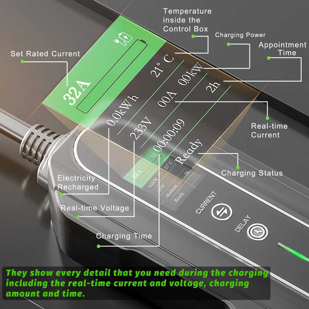 Cargador Carros Electricos EV Nivel 2 Y 1, 10-32 Amp, 110V-240V, De 25 Pies (Tipo 1- J1772)