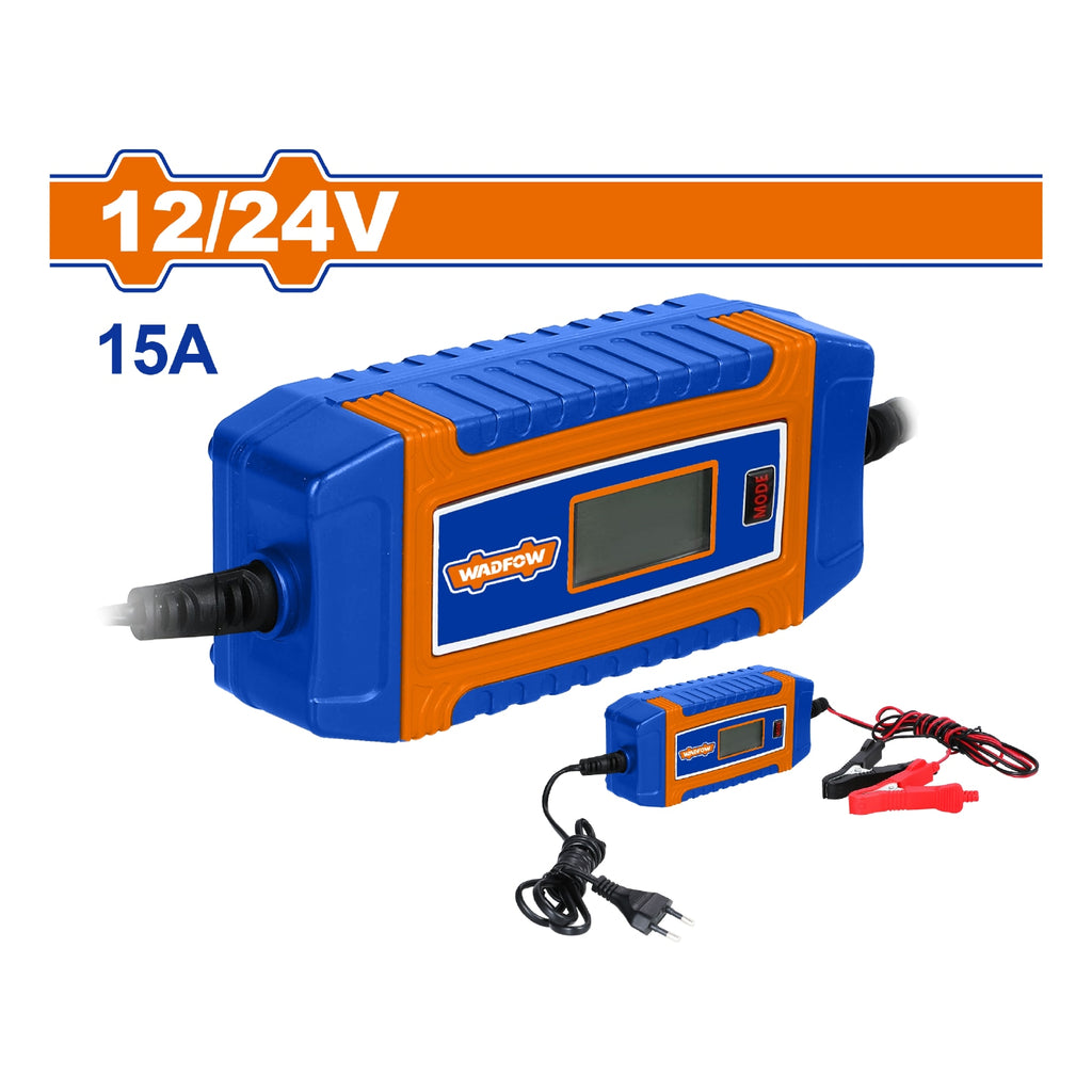 | Características | Frecuencia: 50/60Hz. Voltaje de carga: 12/24V. Corriente nominal: 12V/15A, 24V/7.5A. Pantalla LED. Totalmente automático con protección contra cortocircuitos y polaridad inversa. |