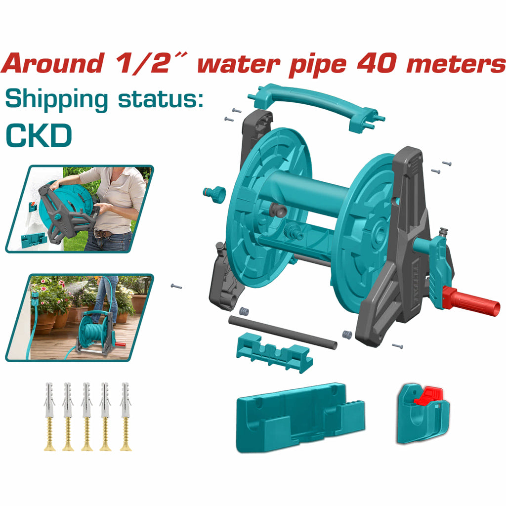 Carrete Para Manguera De 40 Metros. Diseño Antipinchazos. Mango Alargado Y Ampliado. Rollo Para Mangueras