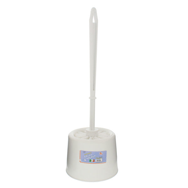 Cepillo con mango para limpieza de inodoros. Incluye soporte para cepillo.