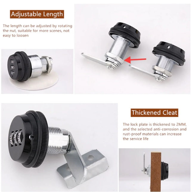 Cerradura de combinación de 3 dígitos para cajas, cajones, puertas, gabinetes, armarios, etc.