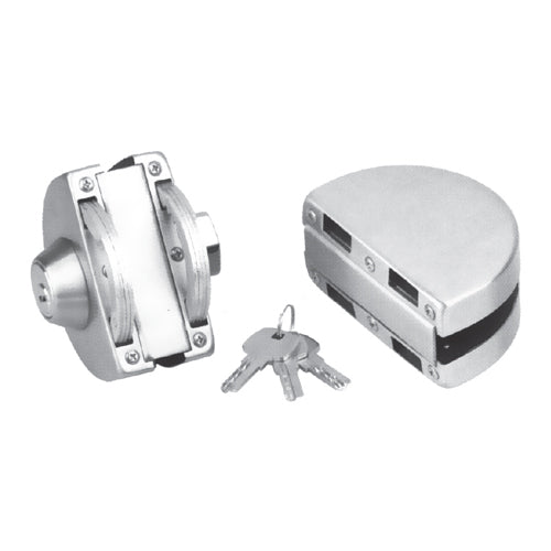 Cerradura de gancho con recibidor para puertas dobles. No requiere perforacion en vidrio 8 a 12 mm. Satinada