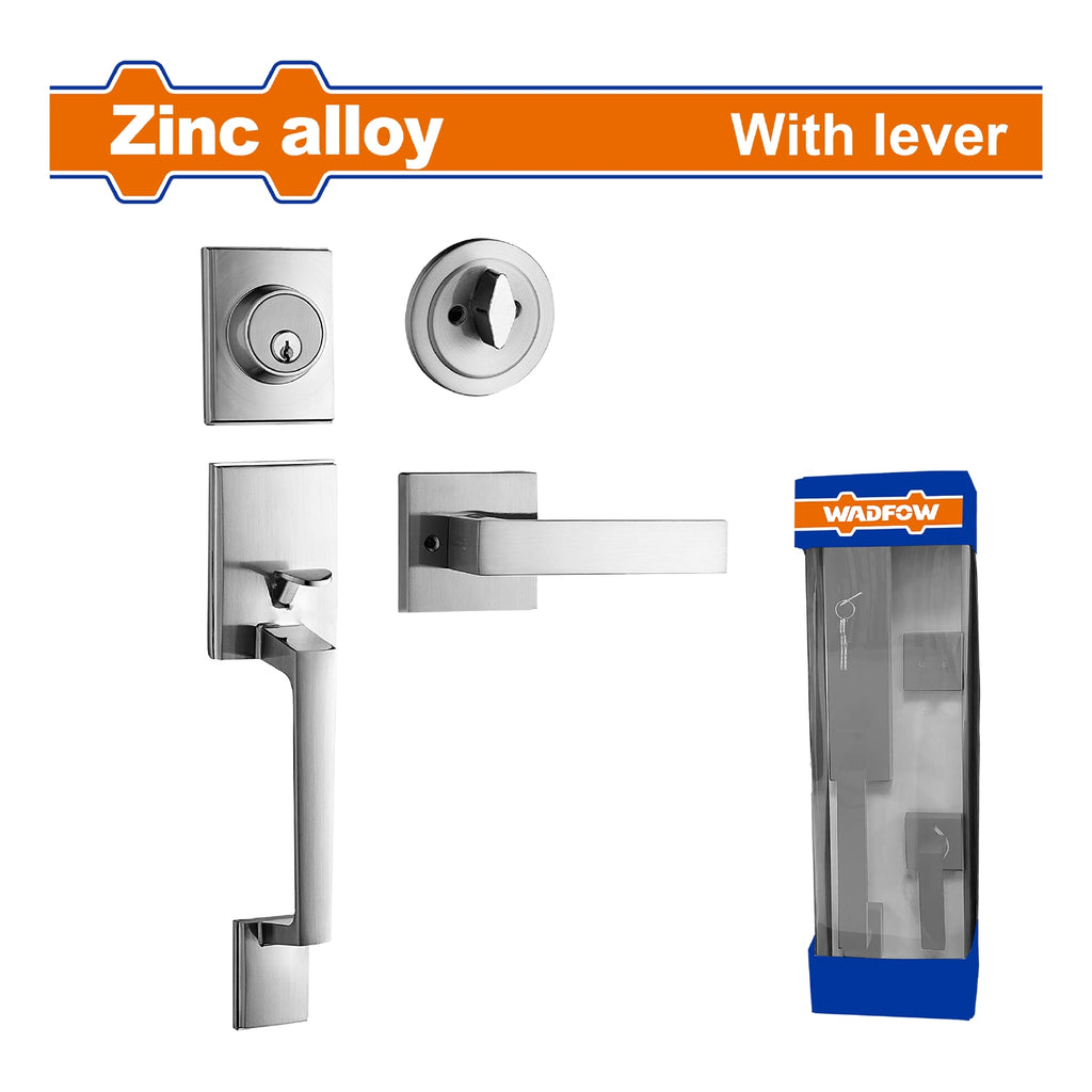 | Características | Acabado: níquel satinado. Manija y palanca interior de aleación de zinc. Guarda de cilindro y pieza de giro con pulgar, también de aleación de zinc. |