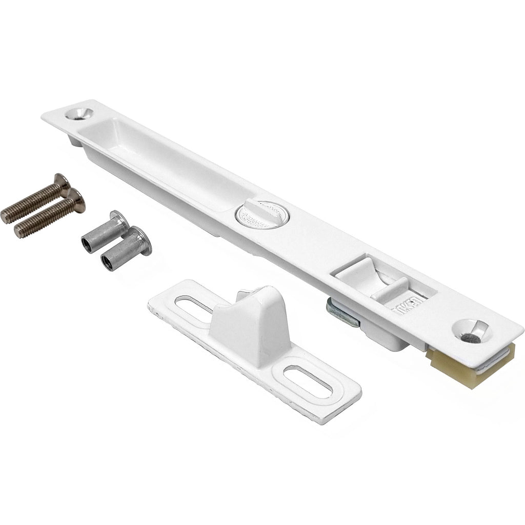 Cierre Embutido Manual para Ventana y Puerta Corredera. Aleacion de Zinc. Incluye Recibidor y Gancho. Color blanco