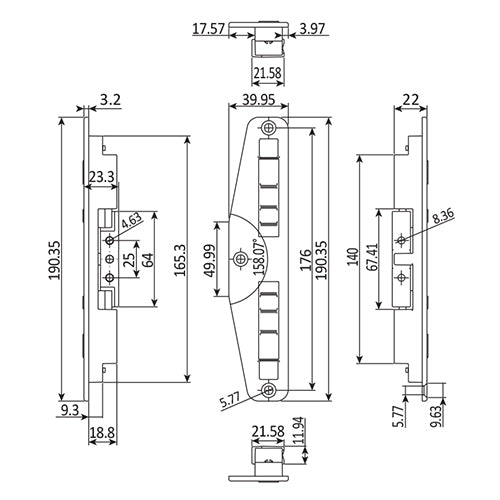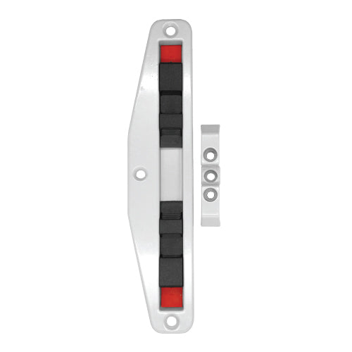 Cierre perimetral de doble gancho. Incluye recibidor y gancho. Tornillo visto. Acabado color Negro.