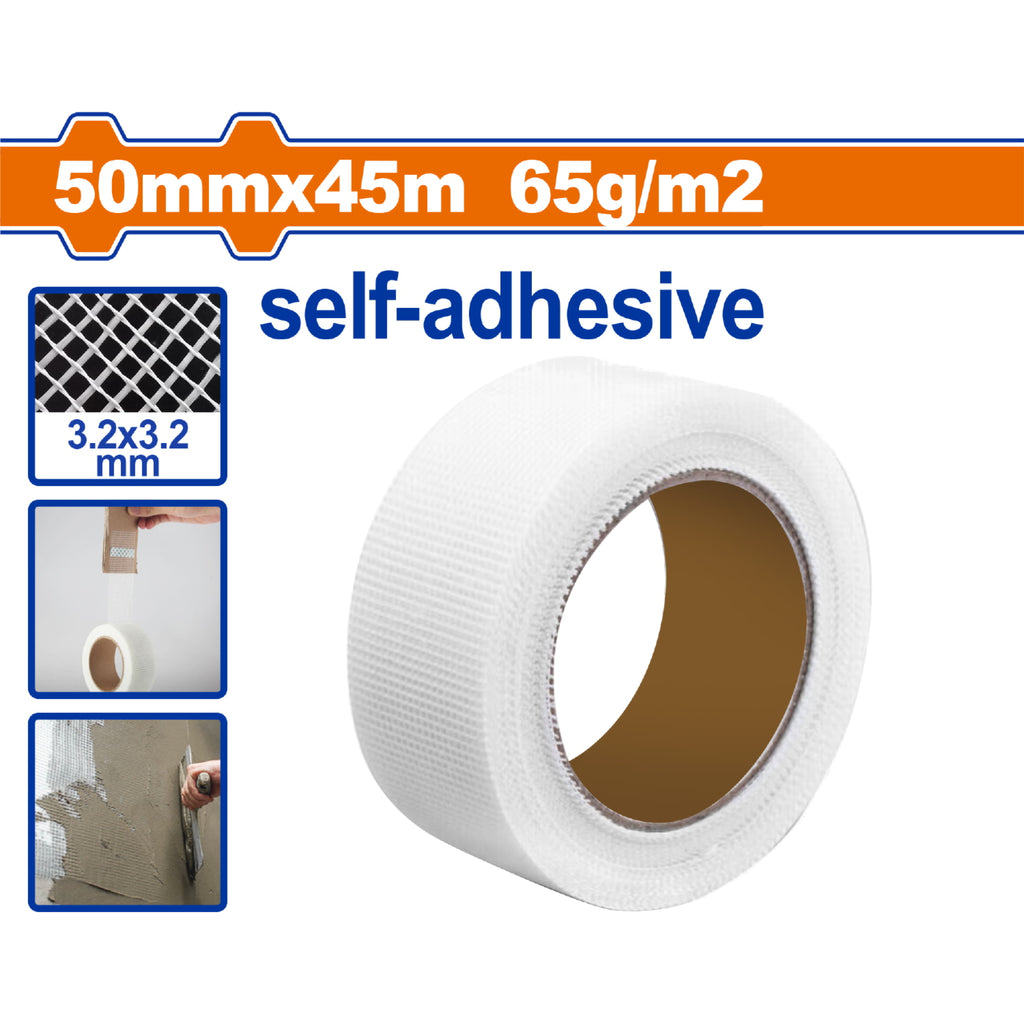 | Características | Material: fibra de vidrio Longitud: 45m Ancho: 50mm Malla: 3.2x3.2mm Densidad: 65g/m² Excelente viscosidad y adhesión superficial. |