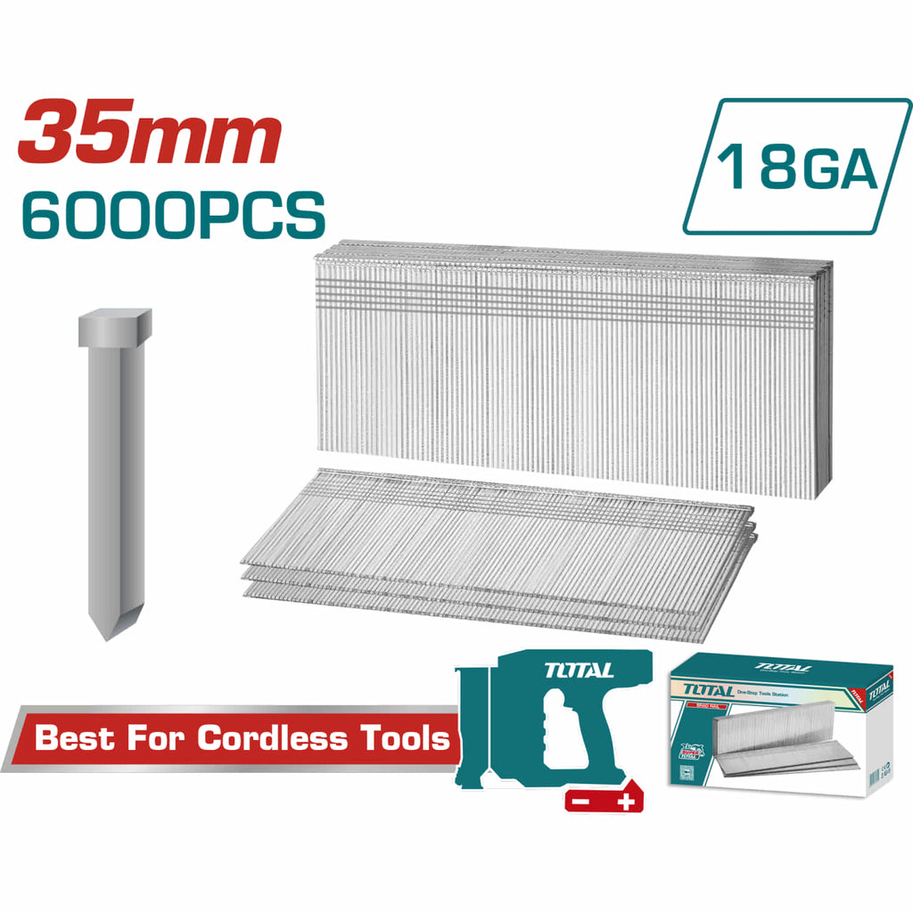 | Características | Clavos Brad 35mm, 6000pcs, Ga18, 1.25x1.0mm, Compatible con TCBNLI3505, TCBNLI3508 |
