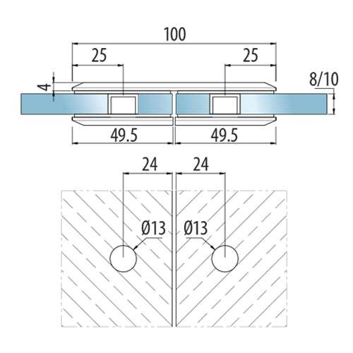 Clip vidrio-vidrio 180 Aleacion ZAMAC. Economico Acabado Satinado. Vida util 2-3 años